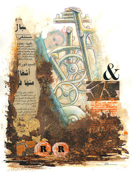 "Coucou" (série des rouages). Acrylique et composition