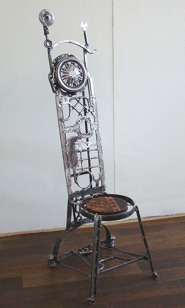 "Kremlin", Chaise en acier de récupération et bois (assise).