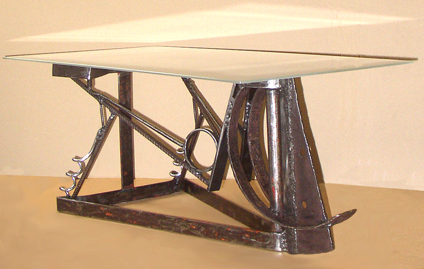 "Design", Table basse de salon, en métal de récupération soudé,