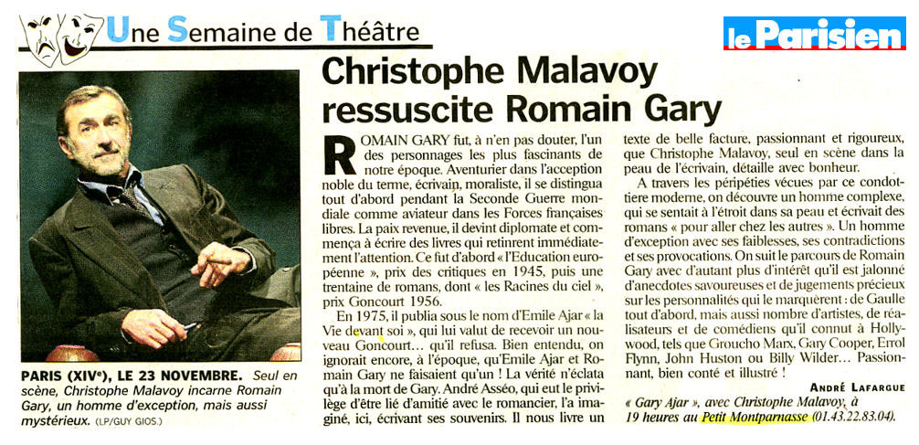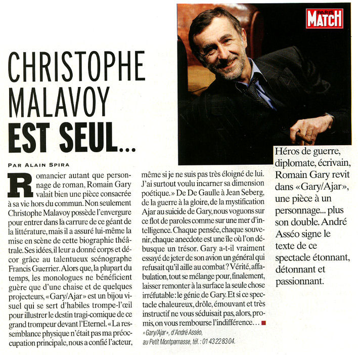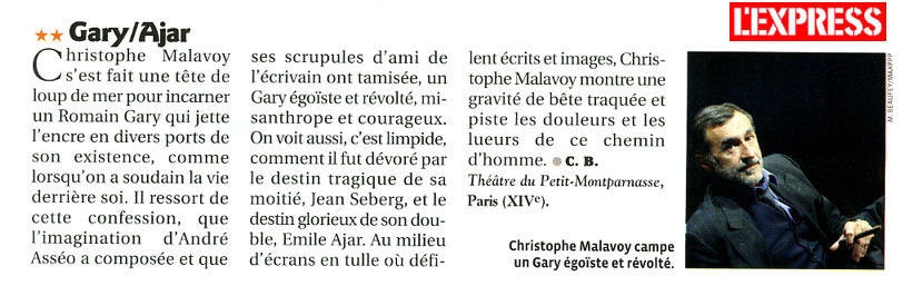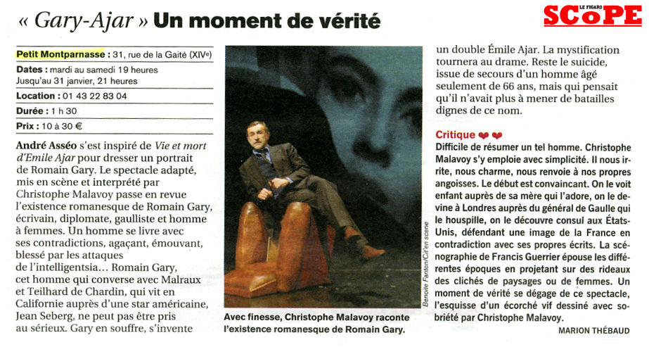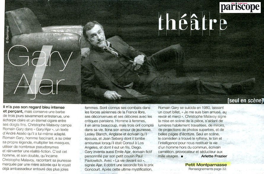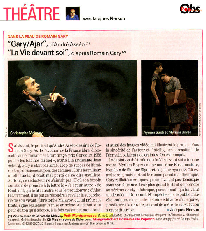 joue "Gary/Ajar" au théâtre du Petit Montparnasse
