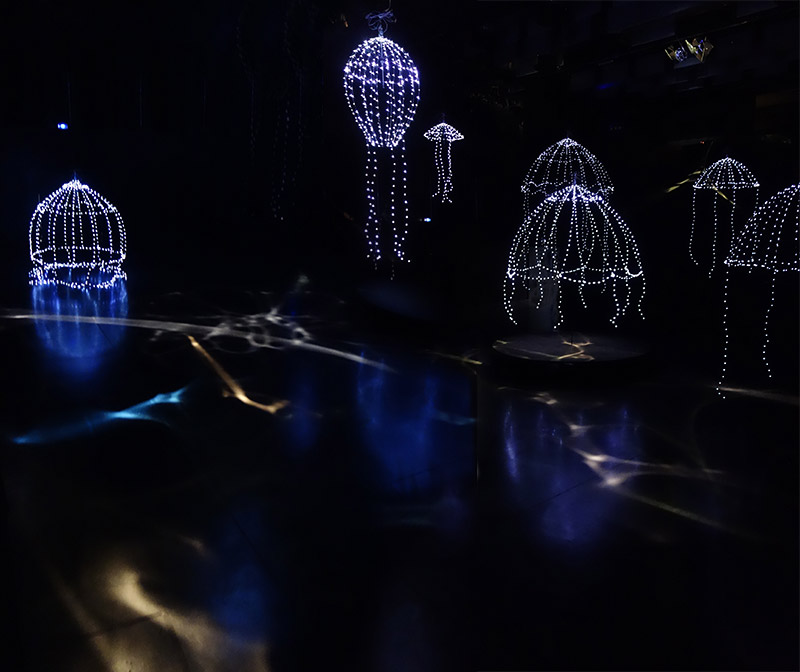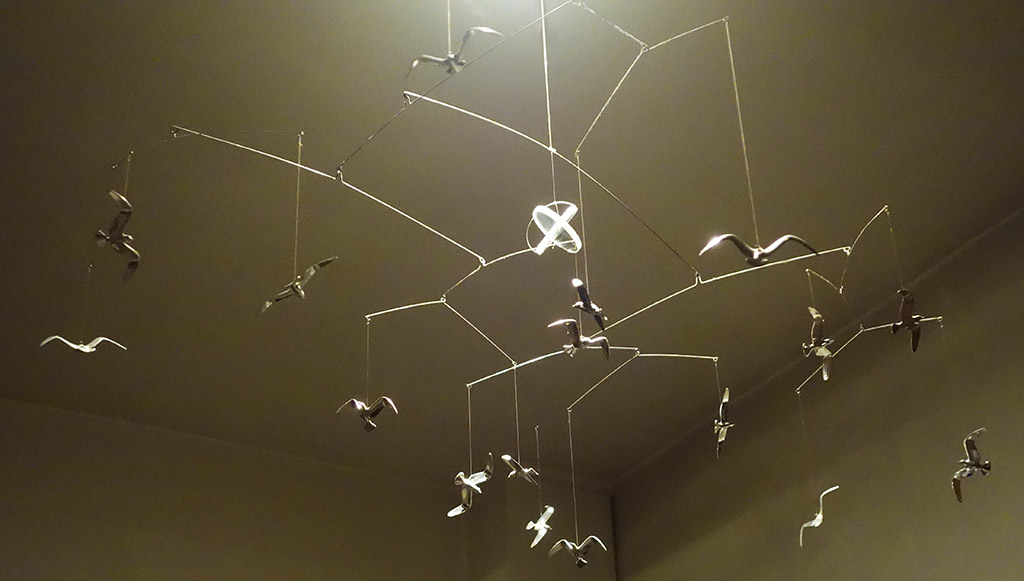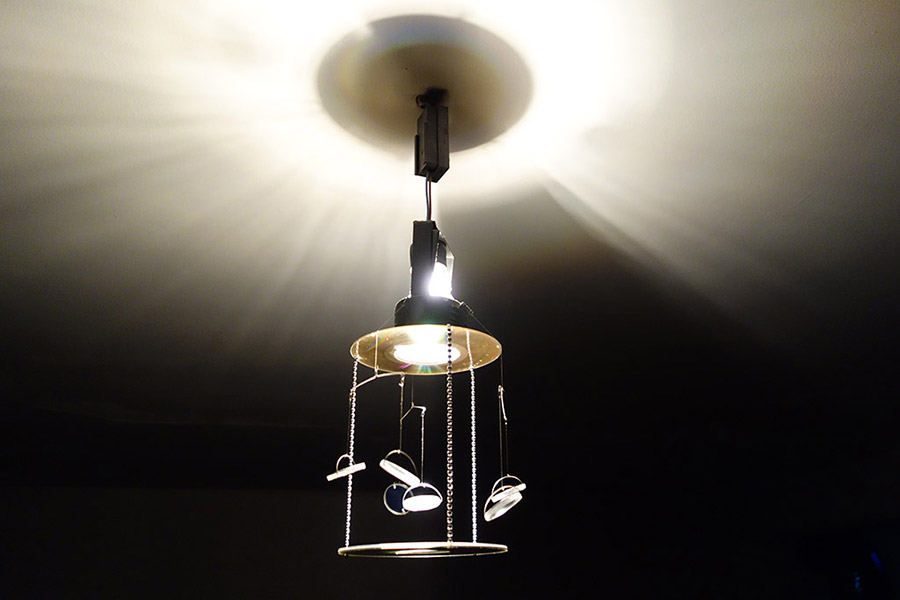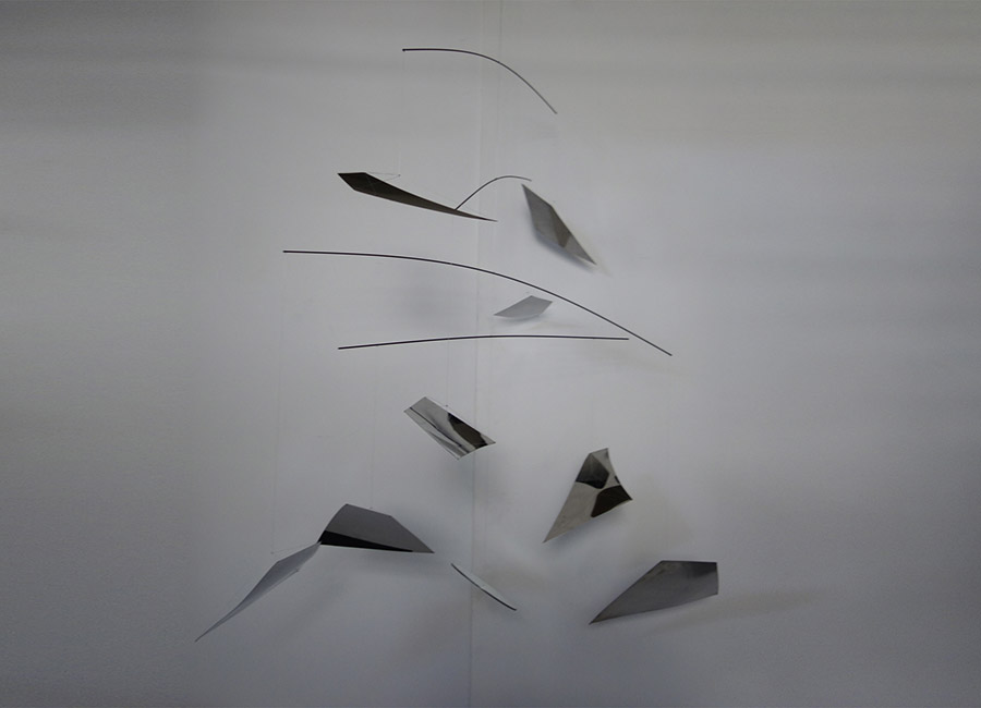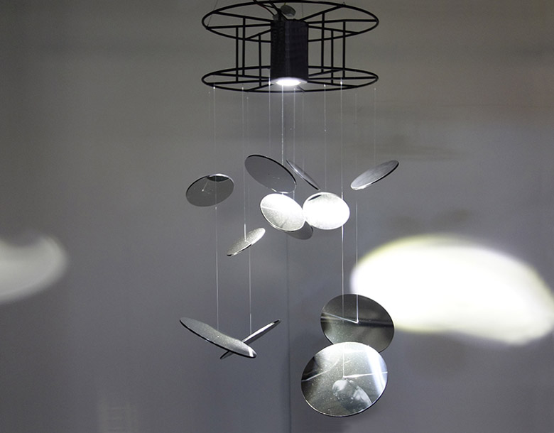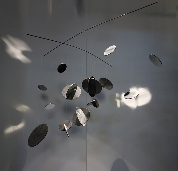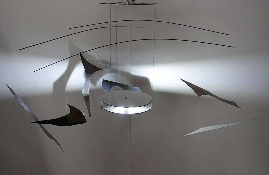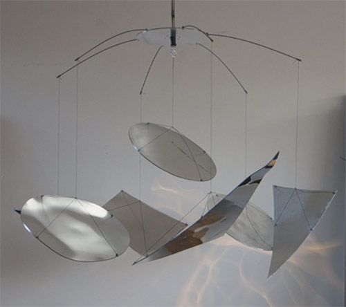 Mobile à miroirs modelés conçu pour le spectacle "les méduses" de Francis Guerrier avec le quatuor Psophos