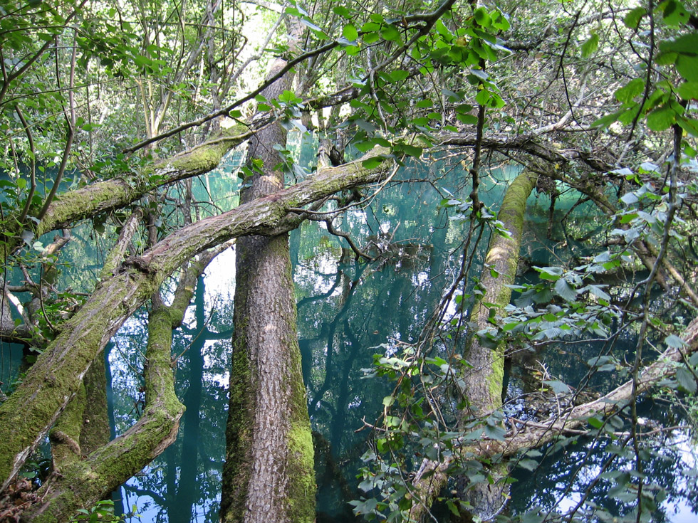 C'est un endroit très étrange, situé à une dizaine de Kilomètres de chez moi et qui m'a déjà inspiré plusieurs tableaux. Une résurgence d'une quarantaine de mètre de profondeur ou l'eau légèrement calcaire donne une lumière émeraude des plus étonnante. Les arbres se courbent naturellement vers la surface de l'eau comme pour saluer la magie du lieu...